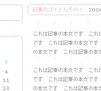 テンプレートのご利用誠にありがとうございます。 お問い合わせの件ですが、 プラグイン部分の「最新CM」がサイズオーバーしていることが原因で、 サイドが下に巻き込んでしまっている状態です。 応急処置として、次のことをおためし下さい。 テンプレートの編集で「CSS編集」のソースから次のソースを探してください。 ----以下ソース---- /*プラグイン表示箇所全体の設定*/ .PluginBlock { width:200px ; text-align:left ; float:left ; } ----以上ソース---- このソースを次に変更してください。 ----以下ソース---- /*プラグイン表示箇所全体の設定*/ .PluginBlock { width:200px ; overflow:hidden ; text-align:left ; float:left ; } ----以上ソース---- 今回のお問い合わせを受け、配布しているテンプレートを修正し更新致しますので、最新バージョンの配布が開始されましたらご連絡差し上げますので、お手数ですがその時はPattern03を再度ダウンロードして頂きますようお願い致します。 お問い合わせ誠にありがとうございました。 無題初めまして┏○ペコリ